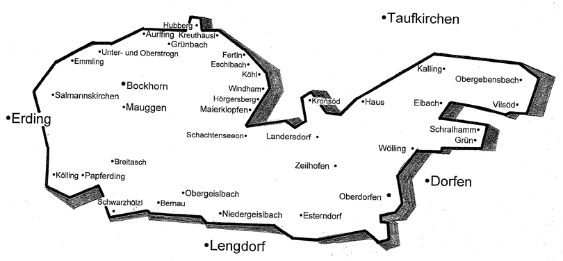 Das Versorgungsgebiet des Zweckverbandes Erding-Ost umfasst die gesamte
